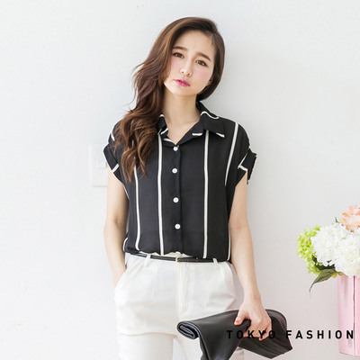 東京著衣 黑白直條紋雪紡襯衫(共二色)-4014303