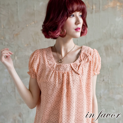 【in favor】美人款 圓點蝴蝶結雪紡上衣-甜美粉橘