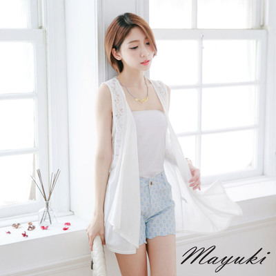 東京著衣-MAYUKI 蕾絲拼接無袖垂墜開襟外套(共二色)