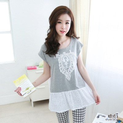 糖罐子-蕾絲貼布緹花拼接棉衫