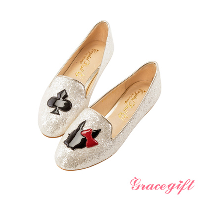 Grace gift X Crystal Ball聯名HIPPIE閃亮金蔥撲克樂福鞋 白