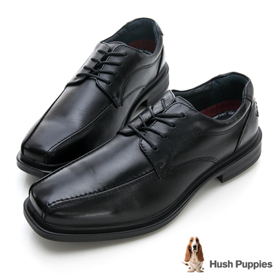 Hush Puppies 吸震紓壓自信紳士綁帶皮鞋-黑