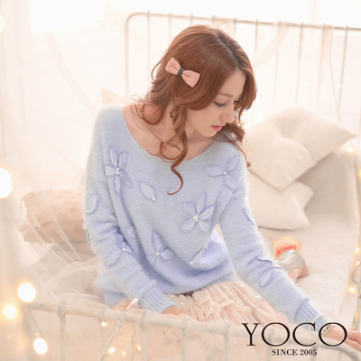 東京著衣-YOCO 立體花朵珍珠兔毛感毛衣(共四色)
