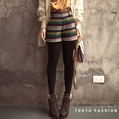 【東京著衣】彩色圖騰橫條紋毛呢短褲(共一色)-3026444