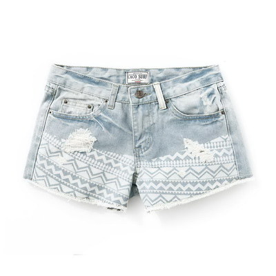 • 水洗牛仔短褲搭配上獨特的民族圖騰設計