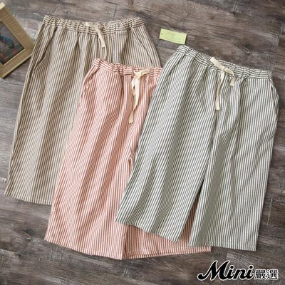 短褲 日系棉麻條紋五分休閒褲 三色-Mini嚴選商品網址: