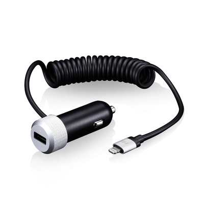 Just Mobile Highway Duo將Apple Lightning捲曲式捲線直接設計在車充上,當您為具有Lightning接頭的iPhone、iPad充電時,還有ㄧ個額外的USB埠可以為其它的智慧型手機或平板電腦充電。