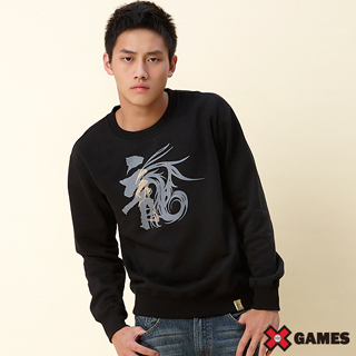 【美國X GAMES】龍傳風雲刷毛圓領T-男(神秘黑)