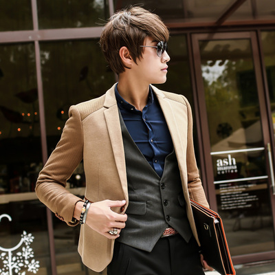 L'AME CHIC韓國英倫華麗雅痞針織拼袖翻領單釦黑色卡其色西裝外套