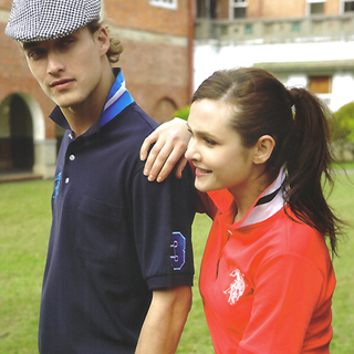 【美國名牌U.S.POLO男女棉質短POLO衫-深藍/紅】
