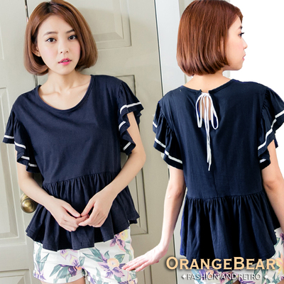 OB嚴選-荷葉袖傘狀下襬上衣.共二色