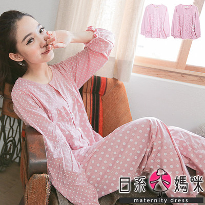 日系小媽咪孕婦裝。舒適柔軟小兔子雙口袋哺乳睡衣套裝 (共二色)