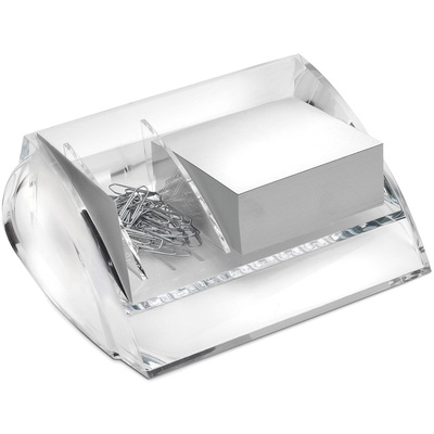 辦公空間物品繁多,若要維持整潔的桌面,則需收納力高的桌面型文具置物座。有 MEMO 座、左側可收納迴紋針、橡皮等小物,側邊還可插立名片。多功能是您辦公桌的必備品。附便條紙與迴紋針。