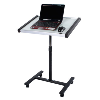 ◆桌面強化玻璃設計,實用美觀高承重,桌面立起來即可當白板使用,可用麥克筆書寫。 ◆桌面角度無限段調整,可依需求調整。大尺寸桌面可放51x37cm內的筆電。 ◆高度可五段調整,按壓鐵珠後即可伸縮調整。 ◆底部為滑輪設計,可隨意移動位置,其中2輪有煞車設計可固定位置,不隨意滑動。