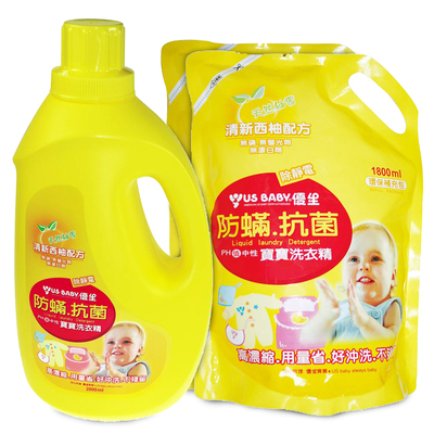 優生 防蹣抗菌洗衣精-柚香2000ml+補充包1800mlx2