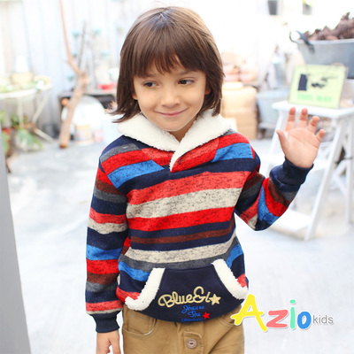 【Azio Kids】彩色條紋刷毛口袋針織T(藍)商品網址: