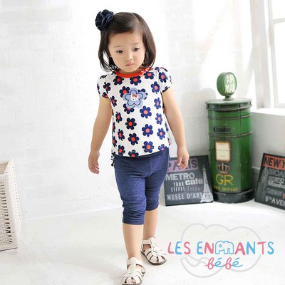 Les enphants Baby可愛布花小蓬短袖上衣-印圖布