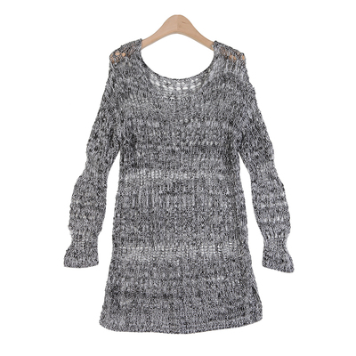 針織鏤空洞洞長版上衣(灰) iFashion