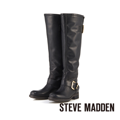 STEVE MADDEN -- 品牌經典拉鍊設計粗曠騎士長靴 -- 不羈黑