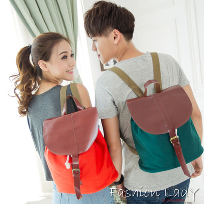 時尚Lady單扣抽繩設計休閒男女中性帆布後背包(2色)