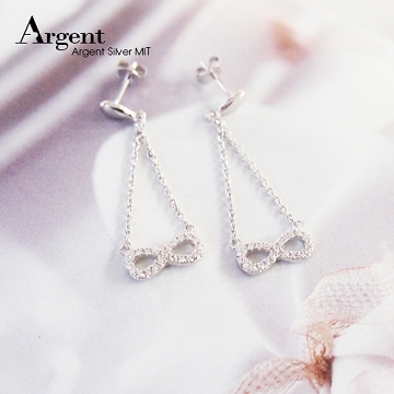 【ARGENT銀飾】微鑲鉑銀閃亮系列「晶鑽無限(白K金)」 純銀耳環 可搭配同系列手鍊