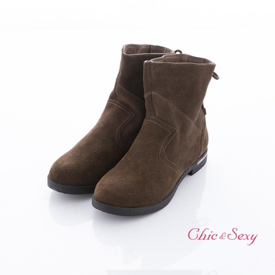 Chic&Sexy 帥氣中性 後綁帶復古麂皮工程靴-綠