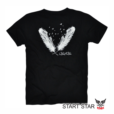 Start Star 鳥羽紛飛圓領T(黑) ★100?梳純棉布料,MIT台灣製造★