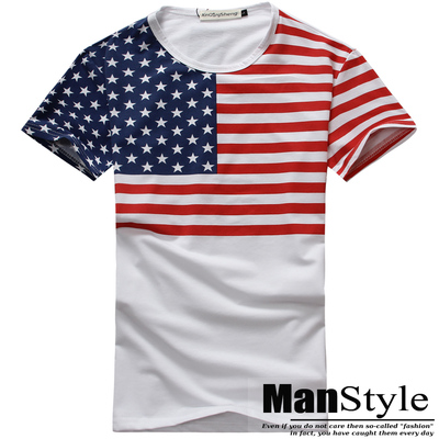 ManStyle潮流嚴選美國旗半版拼接舒適短袖上衣T恤男美式休閒-共二色