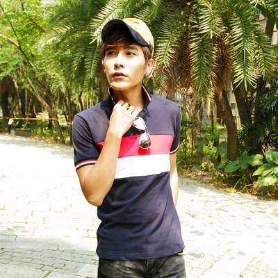商品名稱 胸前色條撞色袖口羅紋彈性網眼POLO杉