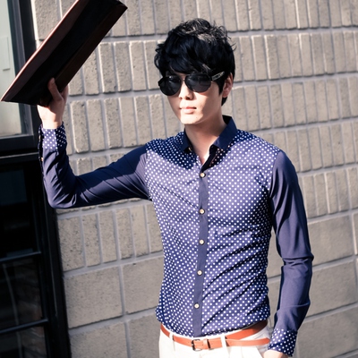 | 商品名稱:都會型男,時尚波點設計長袖襯衫(三色)