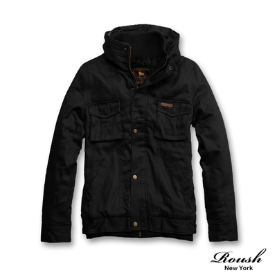 基本款鋪棉外套 搭配上大立領設計 帥氣十足 再加上精緻銅牌造型 打造出獨特風格 ROUSH熱賣款之一