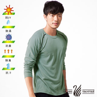 【遊遍天下】中性款運動風抗UV吸濕排汗長袖圓領衫L038灰(S-4L)