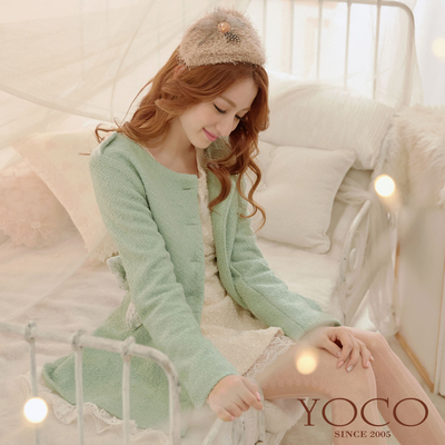 東京著衣【YOCO】蕾絲蝴蝶結排扣洋裝大衣(共二色)