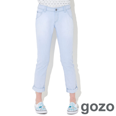 gozo後圓點合身直筒褲(淺藍)