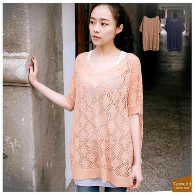 Catworld 透膚菱形鋸齒簍空針織衫共二色