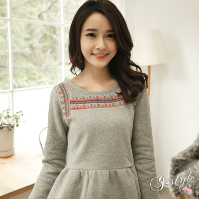 I-sTyLe -甜美民族風圖騰裙襬內刷毛厚棉上衣(共二色)商品網址: