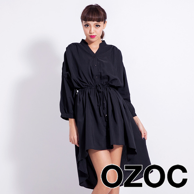 OZOC 蕾絲繡肩不規則下擺洋裝(共三色)