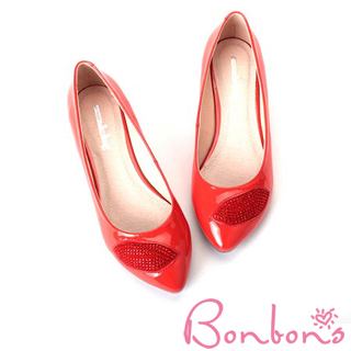 【Bonbons】摩登少女施華洛世奇水鑽尖頭跟鞋121SS0D46(熱情紅34-39)