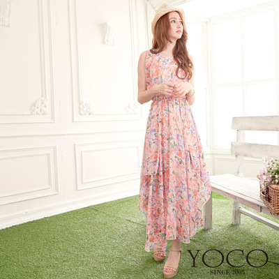 東京著衣-YOCO 粉嫩花彩雪紡長洋裝(共二色)