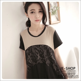 我覺得【IE-SHOP】配色花蕾絲連身洋裝不僅穿起來合身舒適,自己感覺也變很有時尚的FU!!(哈哈哈!!!!)