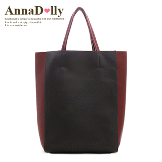 【ANNA DOLLY】簡約百搭Splice配色通勤包(深酒紅)
