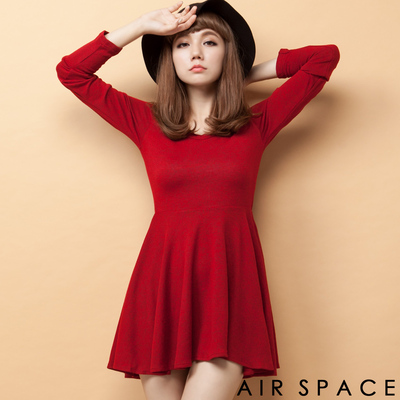AIR SPACE 素面圓領傘狀長袖針織小洋裝(注目紅)商品網址: