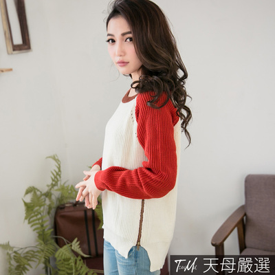 【天母嚴選】流行韓意?拉鍊造型拼色針織衫(米白M-L)商品網址: