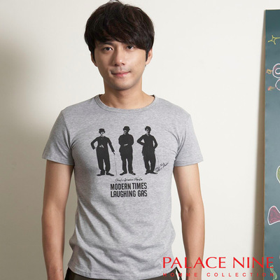 【PALACE NINE】黑色卓別林圖案灰色短袖T恤