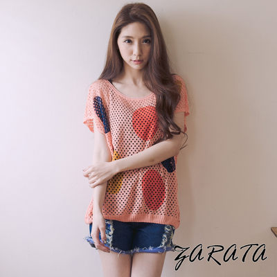 【ZARATA】針織衫-圓領洞洞圓彩點短版罩衫-粉