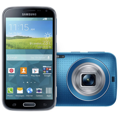 SAMSUNG GALAXY K Zoom,配備 1/2.3 吋 2,070 萬畫素 BSI CMOS 感光元件,支援 24-240mm 10 倍光學變焦、光圈 F3.1-F6.3 與光學防手震,具備氙氣閃光燈,並擁有 AF / AE 分離、超級省電模式等功能,另設有 200 萬畫素前置鏡頭。SAMSUNG GALAXY K Zoom 搭載 Android 4.4 KitKat 作業系統,採用 4.8 吋 HD Super AMOLED 螢幕、SAMSUNG Exynos 5 Hexa 六核心處理器(1.7GHz x 2 + 1.3GHz x 4)以及 2GB RAM / 8GB ROM,能透過 microSD 卡擴充,電池容量為 2,430mAh,同時支援 Wi-Fi、藍牙 4.0、NFC 和 HSPA+,將提供 3G 與 LTE 版本。