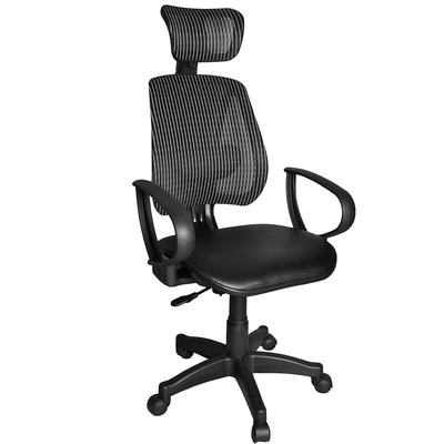,椅背上緣依然搭配上黑白線條,更顯高貴氣場。優良腰枕設計,渾圓飽滿的腰枕扎實的撐托著網背腰部,舒適倚靠。