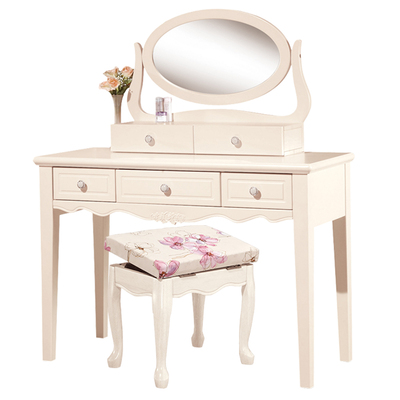 【產品特色】 ●溫馨家庭式風格,襯托出亮麗典雅氣息。 ●此產品非DIY商品,客約送貨到府。 ●商品材質:歐盟認證E1級綠能環保板。甲醇釋放量低於標準值。 ●商品塗裝:重金屬含量低於標準值無毒塗裝。經紅外線,紫外線處理全包市塗裝。環保無汙染水性油漆。 ●商品尺寸: 尺鏡台-寬106x深45x高133cm 化妝椅-寬44x深29x高44cm ※此商品不包含化妝台上的其他物品。