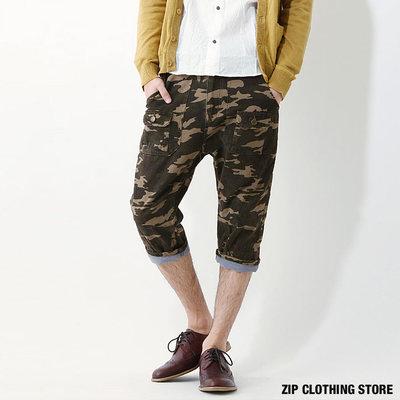 商品訊息描述: ZIP日本男裝 反捲帆布七分工作褲迷彩色
