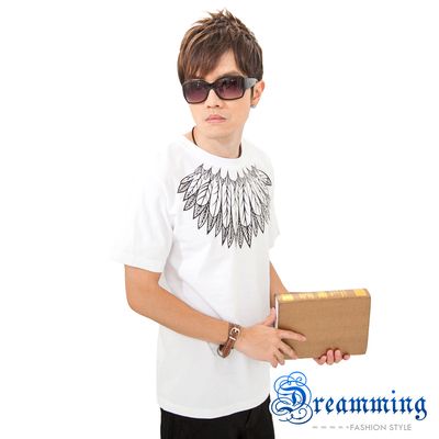 【Dreamming】民族風羽毛線條印花短T-共三色【T1011】